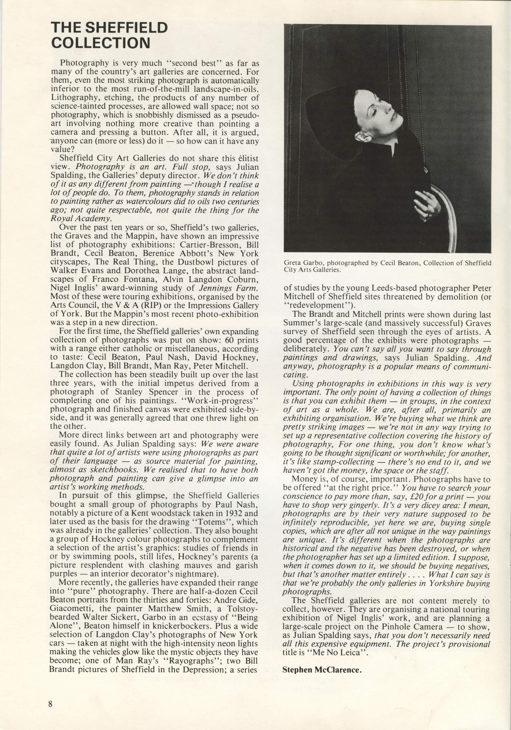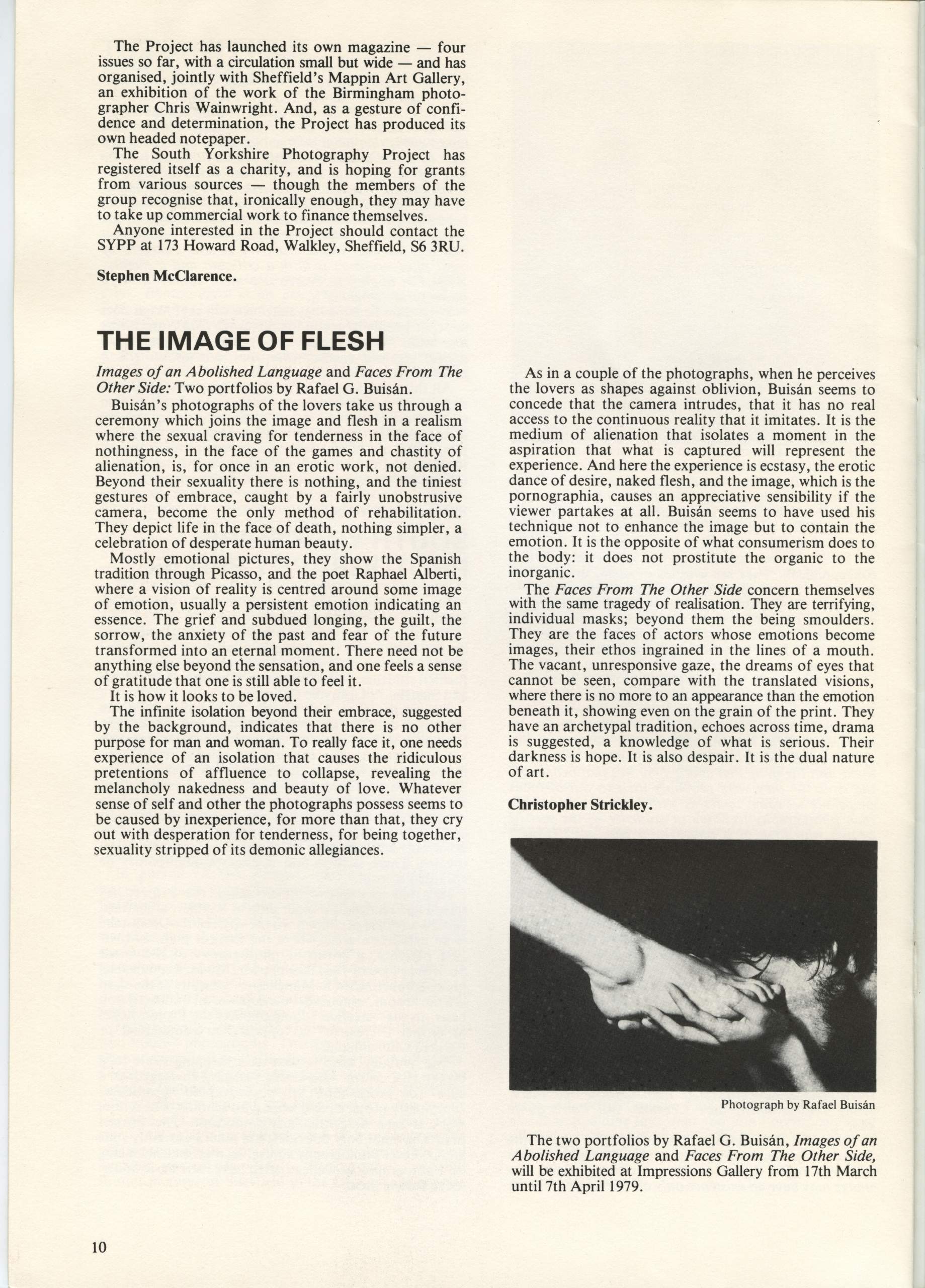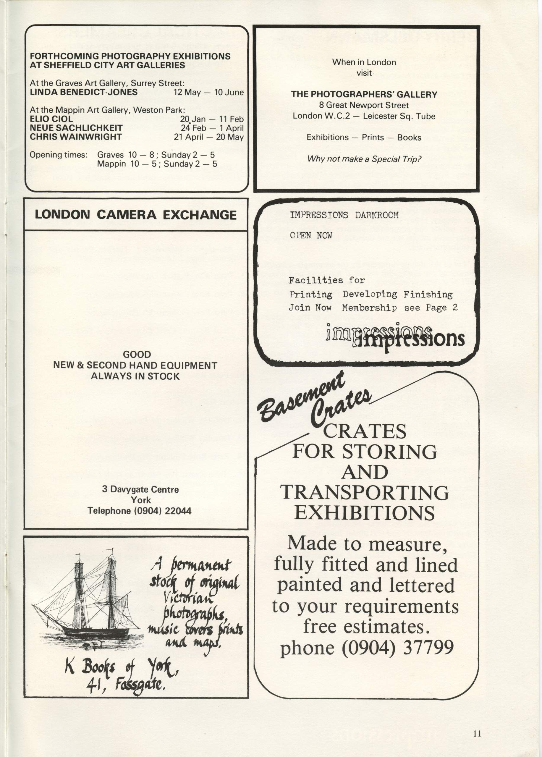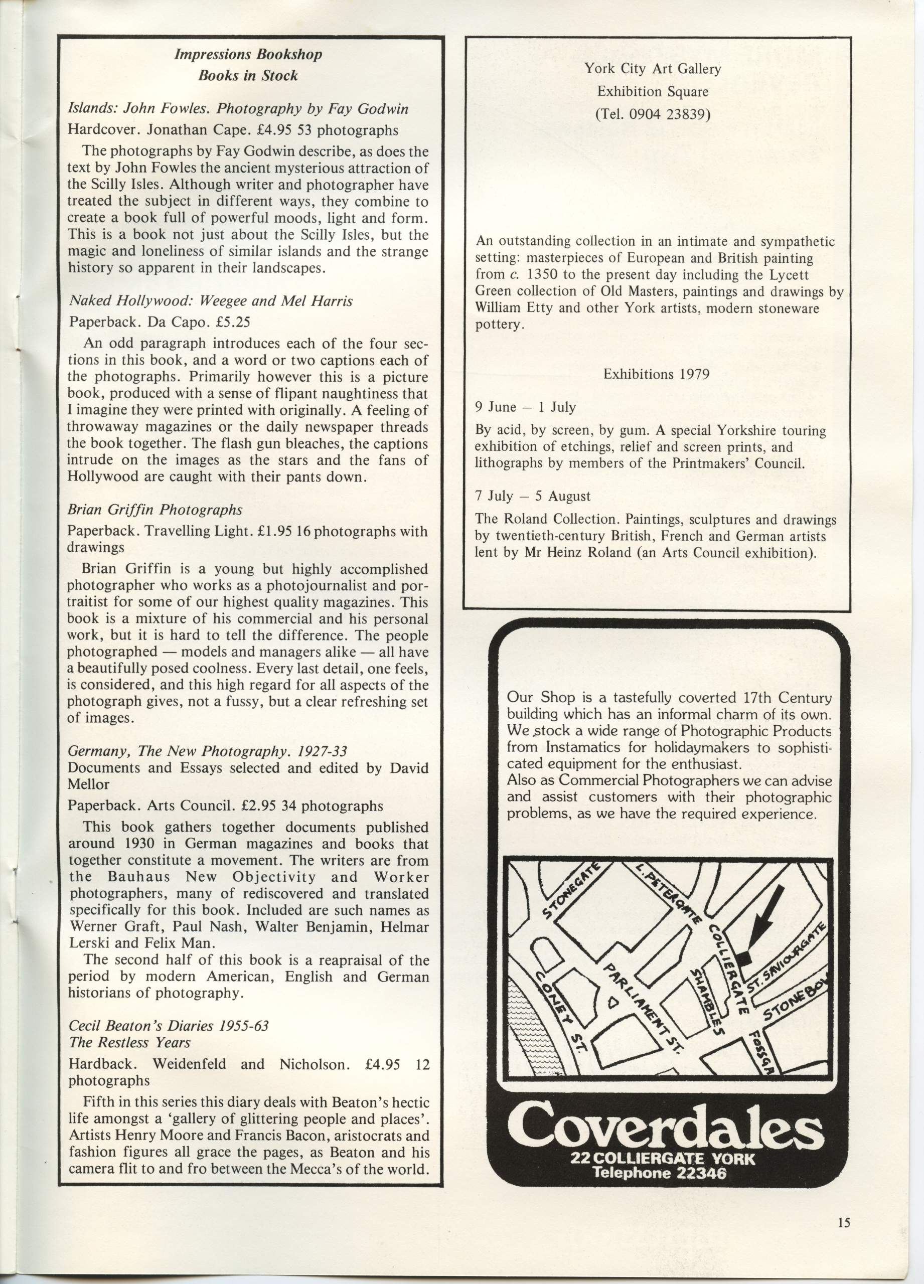 The assistant editor of Photographers was Les Shackell, then exhibitions assistant at Impressions, design was by a local artist and the issues were printed at Speight’s in Guiseley, near Leeds, who were at that time, the printer of choice for many photographers and publishers of photographic books.