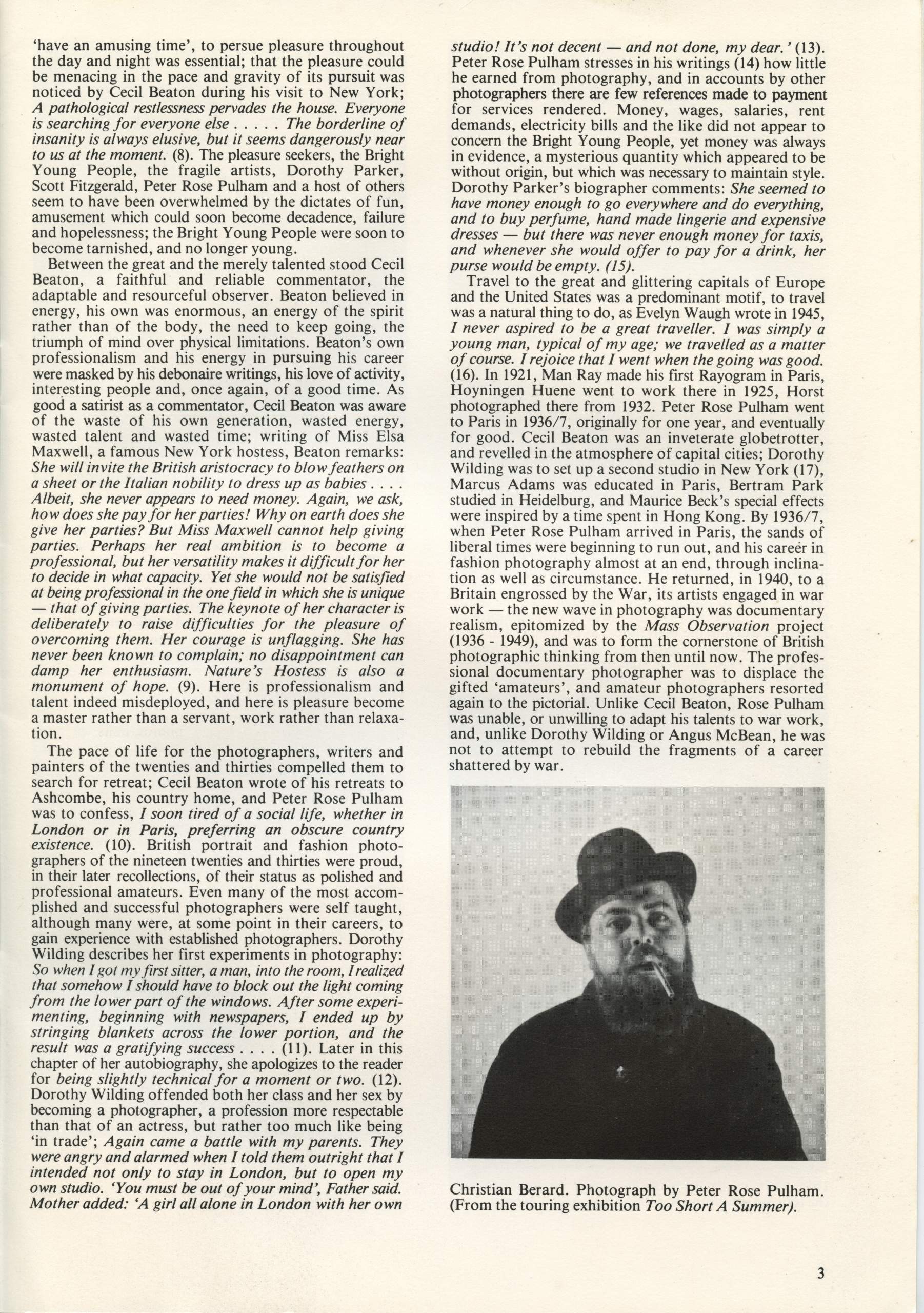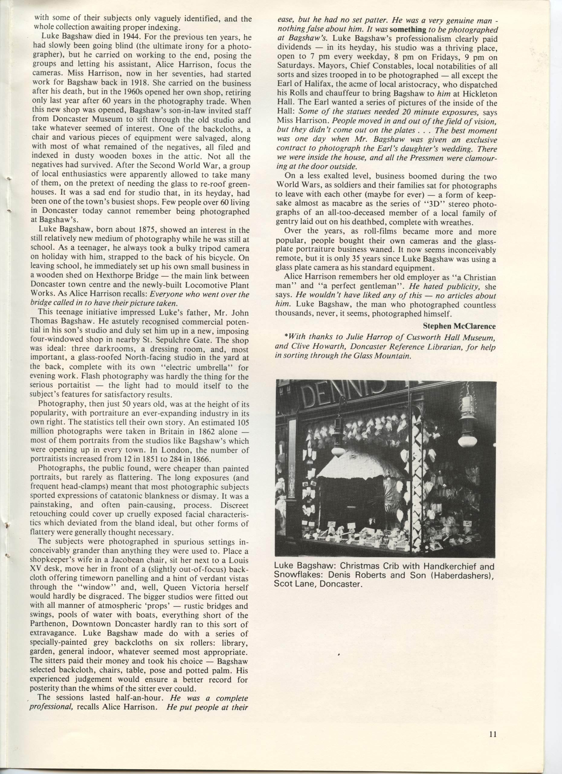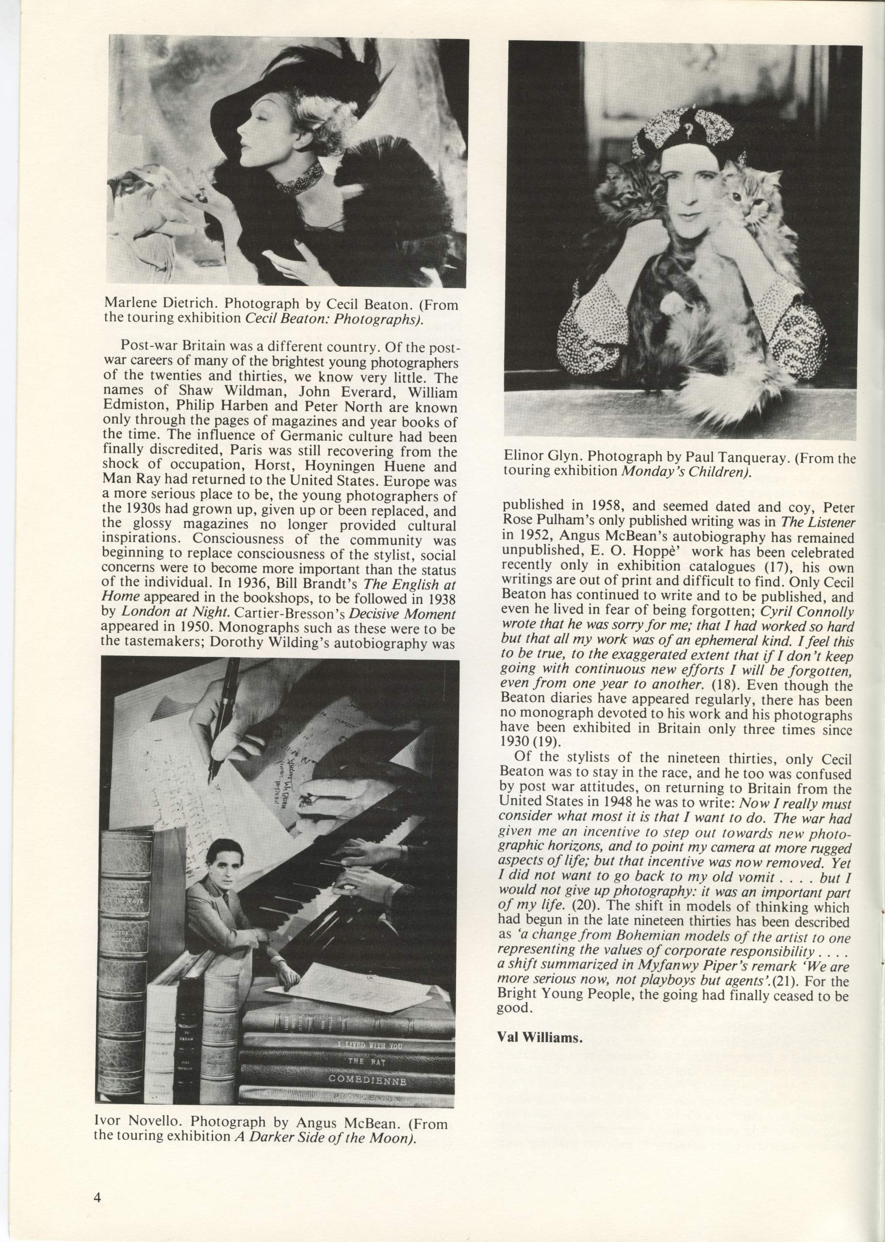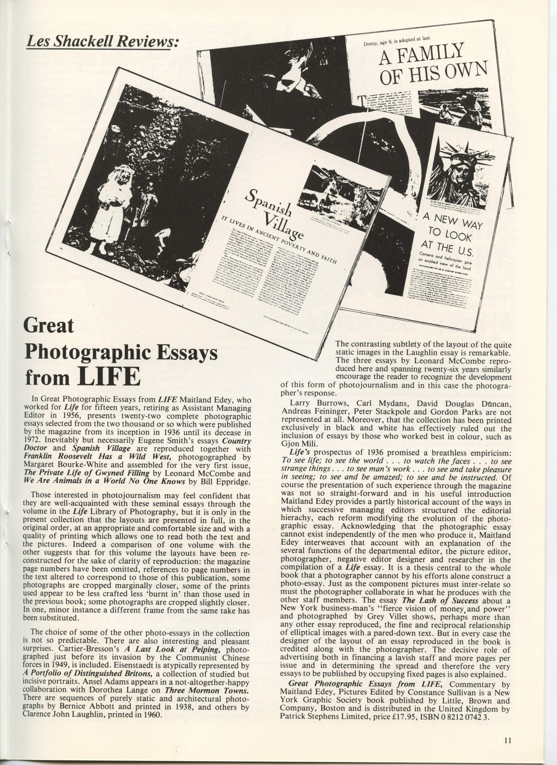 Issue no 1 also included a portfolio of photographs by 19thc Whitby photographer Thomas Watson, a profile of Ken Baird by Val Williams and reviews of the BBC Exploring Photography series and the exhibition 23 Photographers – 23 Directions at the Walker Art Gallery, Liverpool and a preview of the upcoming E. O. Hoppe exhibition at Impressions.